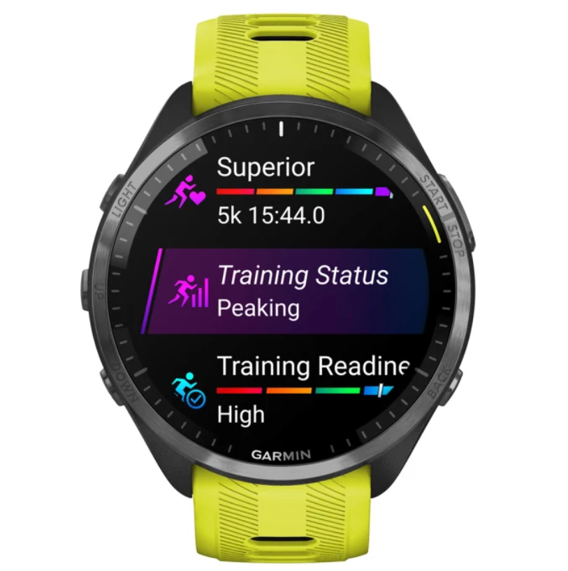 - Training Readiness: Whether you’re running on city streets or riding densely covered trails, Forerunner 965 provides, full-color, built-in mapping to keep you on track. From the moment you wake up, get a readiness score based on your sleep quality, recovery, training load and more, so you can determine whether it’s a good day to go hard – or take it easy.
