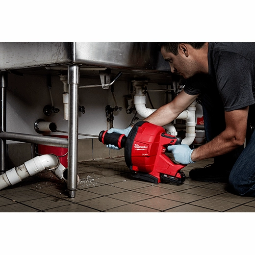 Our M18 FUEL™ Drain Snake with CABLE DRIVE™ Locking Feed System represents the next level in performance for handheld machines and is the first to bring brushless motor technology to the drain cleaning industry. The POWERSTATE™ Brushless Motor provides more clearing power than corded competitors for tough jobs through 3 inch drain lines. REDLINK PLUS™ Intelligence ensures maximum performance under load and improves control throughout the entire process. The REDLITHIUM™ battery pack powers through multiple jobs on a single charge, delivering cordless mobility, safety, and power supply to the drain cleaning industry. MILWAUKEE® CABLE DRIVE™ Locking Feed System maintains the selected feed speed, and its twist lock design auto-adjusts to all compatible cable sizes, giving you the best cable grip when feeding and working the clog. Our drain snake is the professional solution for unclogging sinks, bathtubs, showers and more. M18 FUEL™ Drain Snake has a fully enclosed drum to ensure you get the best protection and mess containment.